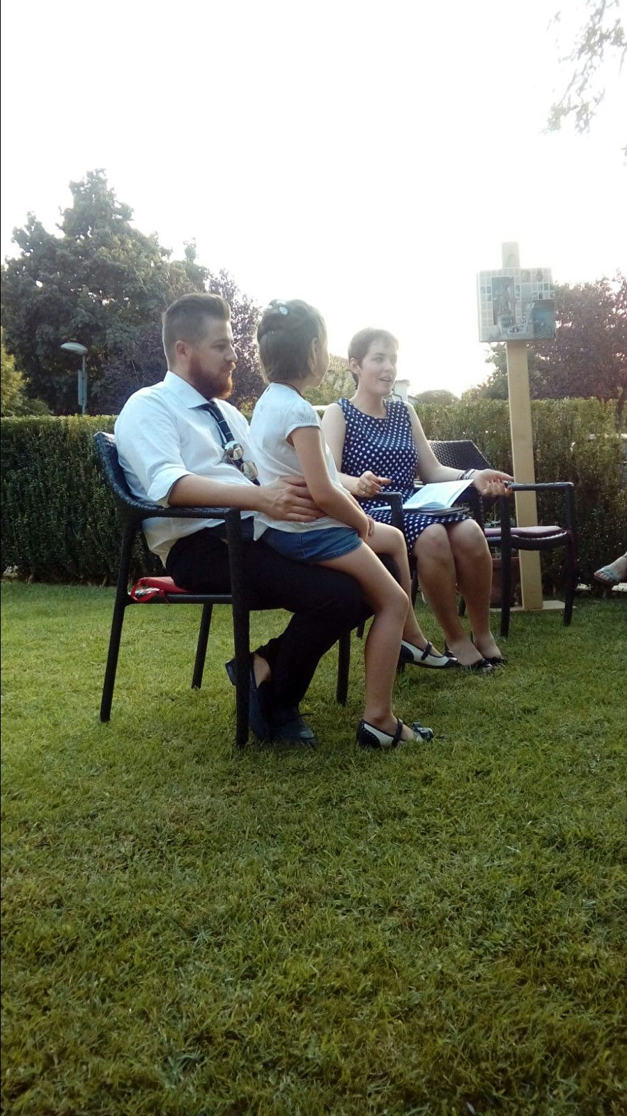 Dopo la presentazione della curatrice Elena Stoppa, Simone saluta i visitatori