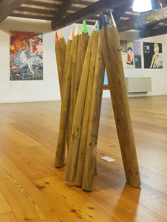 Da sinistra Simone con gli artisti Marco Turetta, Elena Greggio e Silvia Lepore (anch'essa in mostra)