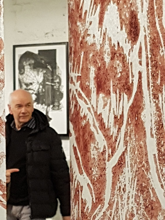Simone con Vladimiro Elvieri, organizzatore della mostra e grandissimo incisore, e lo stampatore Giancarlo Busato